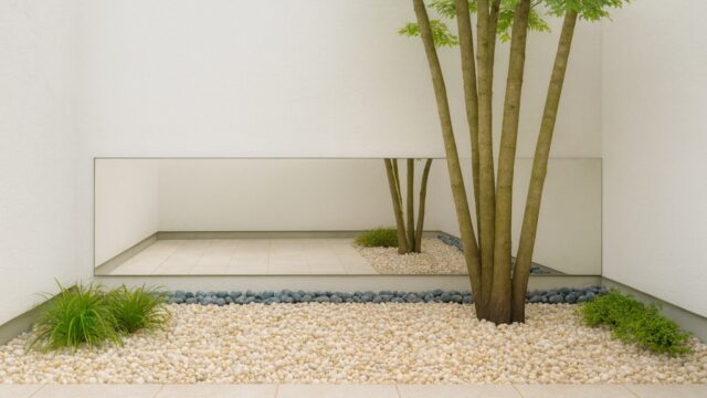 ミラーの特性を活かして、庭を広く、そして明るく見せることができますよ。