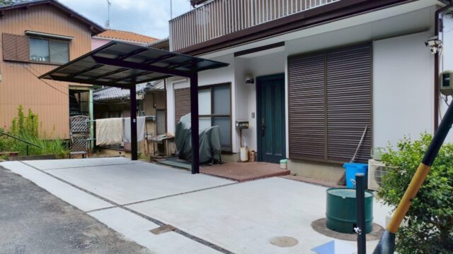 施工内容 | 駐車場(土間コンクリート)、カーポート設置、井戸周り整備 |