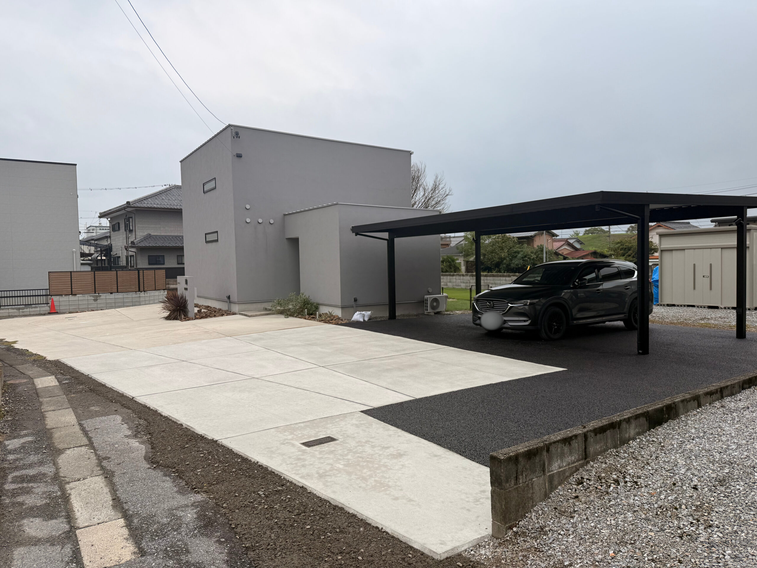 家の雰囲気と調和したシャープなデザインの駐車場が完成し、「とても丁寧な対応で、気持ちよく打ち合わせができた」「価格も他社より安く満足」という嬉しい口コミをいただきました。