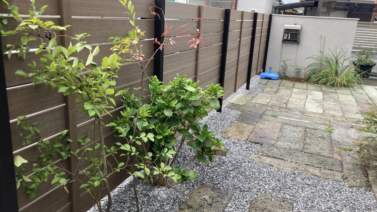 新しいフェンスと門扉は、外からの視線を効果的に遮り、プライベートな空間を確保。