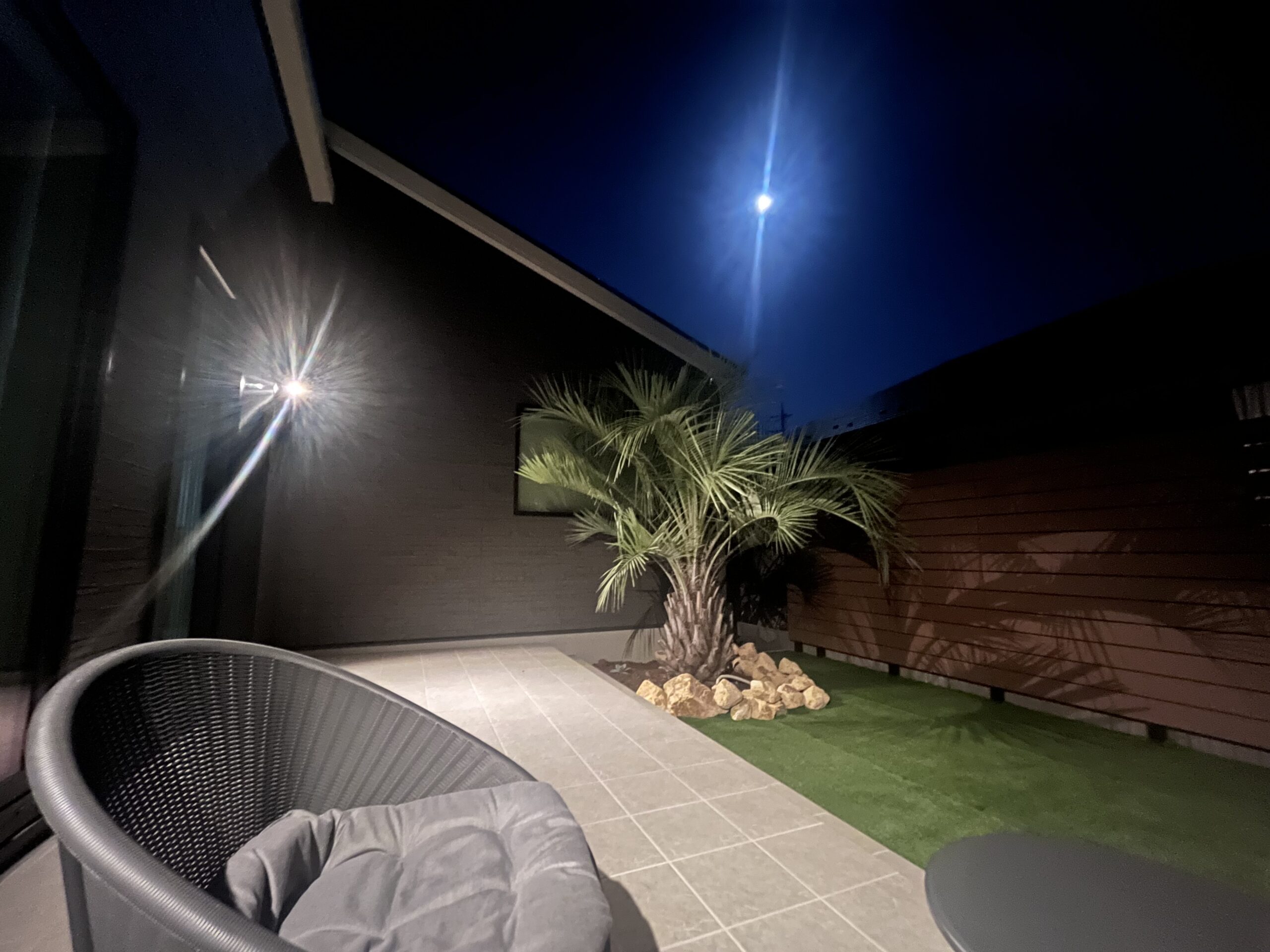 「憧れだった」というヤシの木を植えることで、外構が単なる機能的な空間でなく、施主様の夢を叶える場所になったことが伝わってきます。