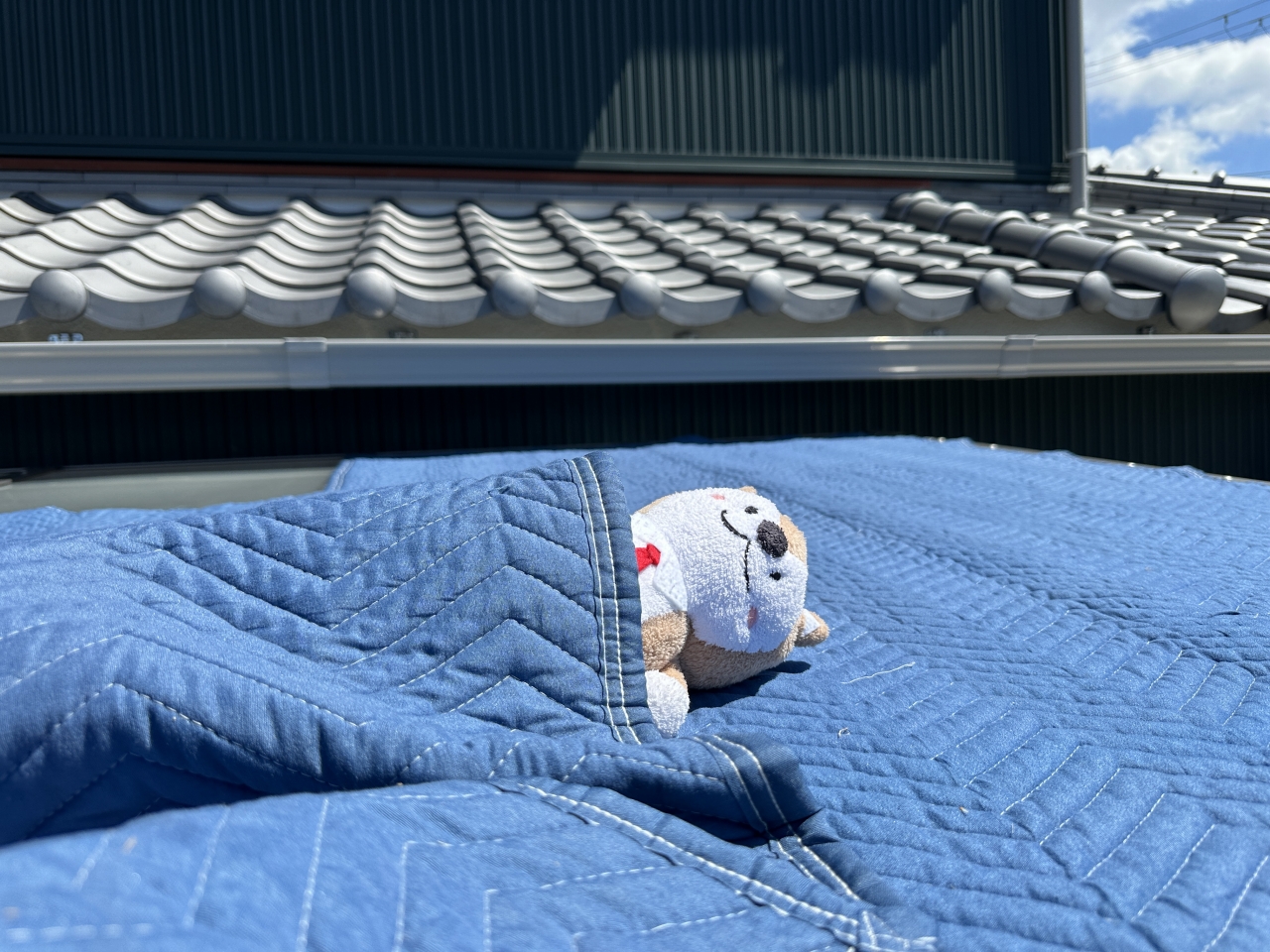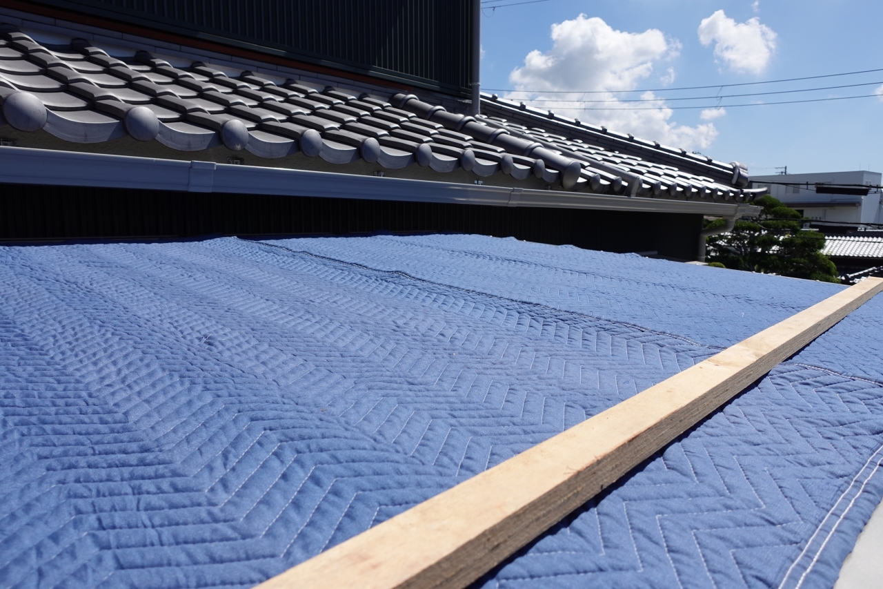 屋根に大きなシートを広げている様子は、ご近所の方から見たら「何を干しているんだろう?布団かな?」と思われたかもしれません…。