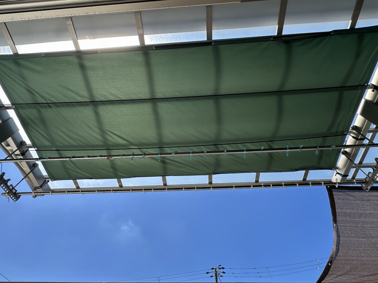 我が家では、夏の暑い時期だけシェードを設置し、冬になったら外して日光をたくさん取り込む「ハイブリッド方式」を採用しています。