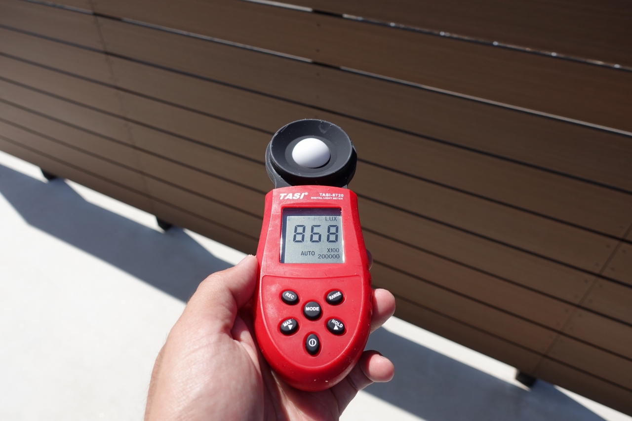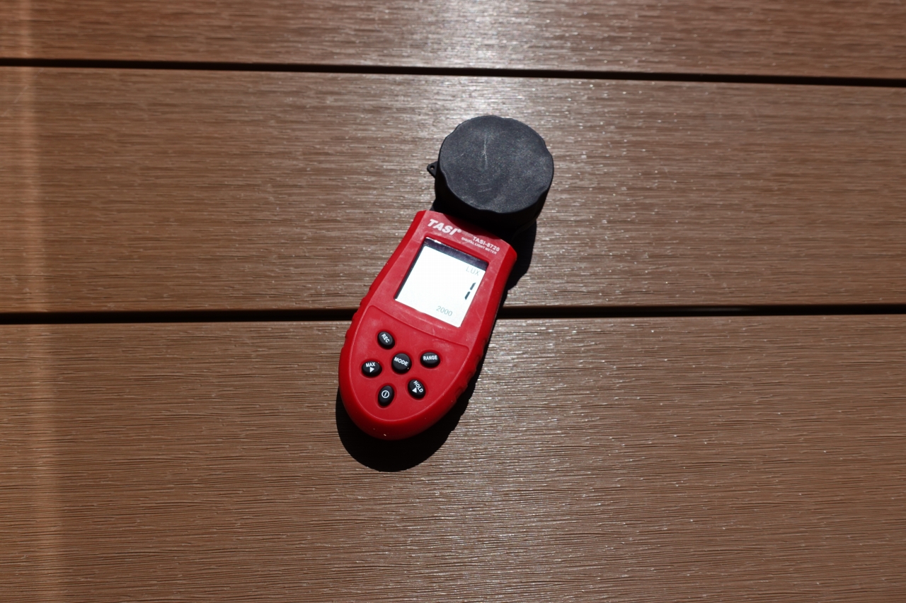 参考までに、真夏の晴れた昼間の屋外では約10万luxでした。