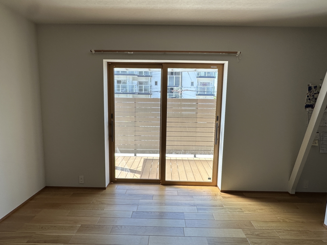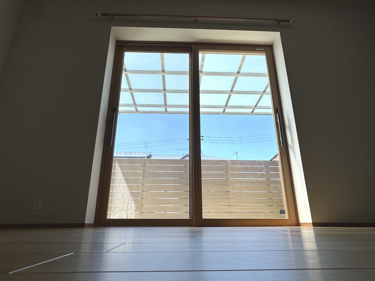 窓の外の土間コンクリートやウッドデッキ、フェンスに光が反射して入ってくるため、シャッターを閉めたときのように完全に光がなくなるわけではないのです。