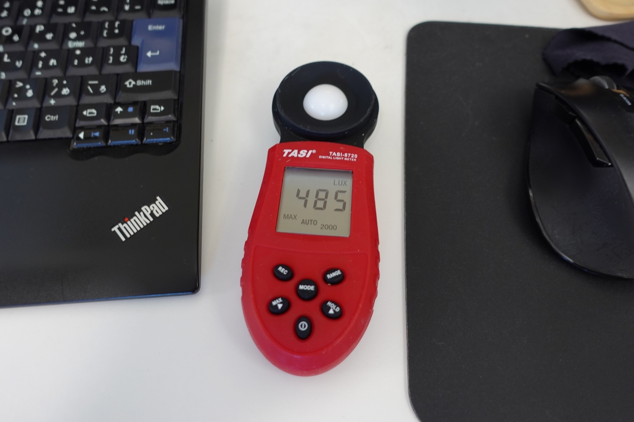 照明をつけたオフィス内は大体500luxでした。