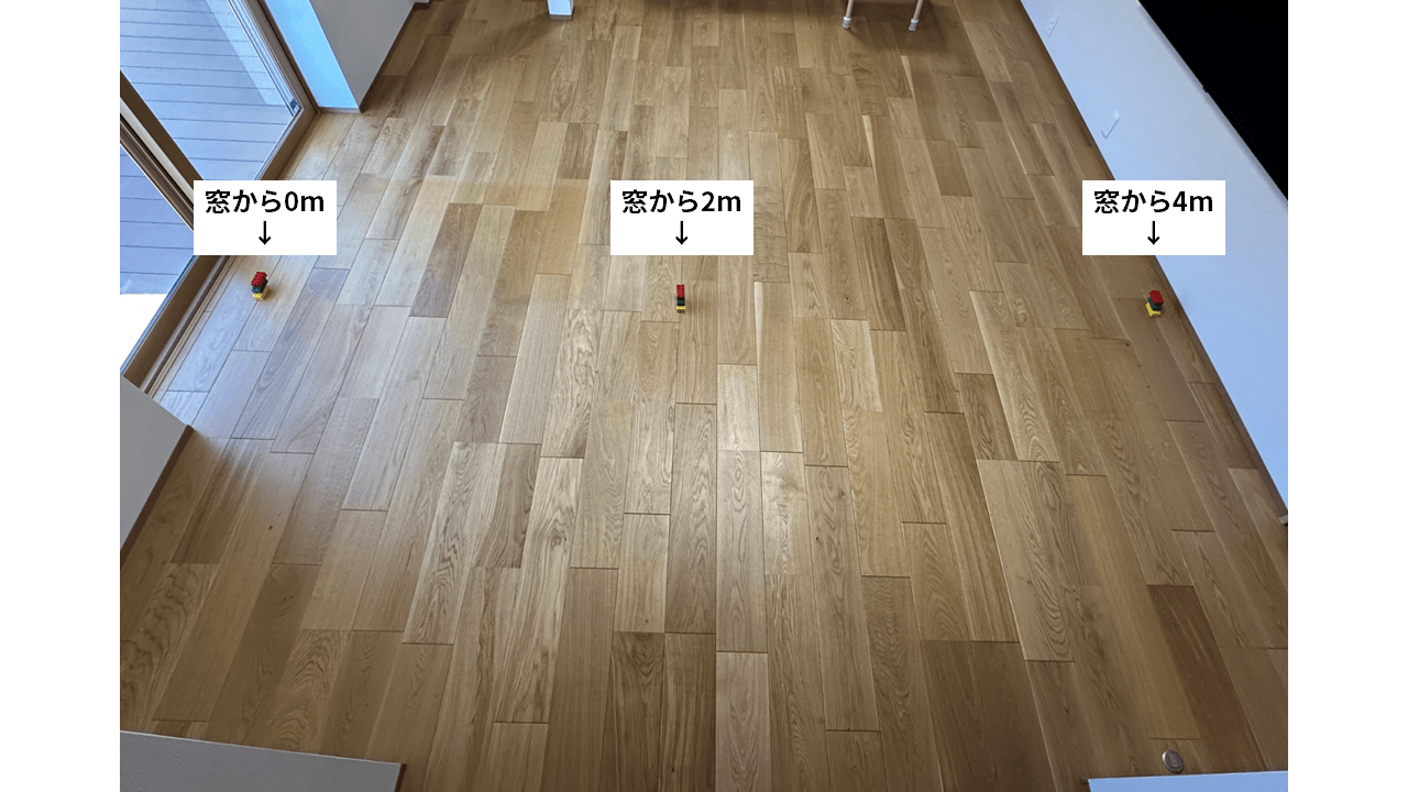 - リビングの中心部(窓から2m)